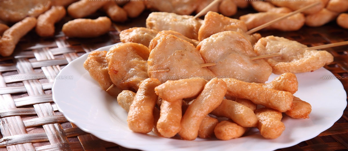 Hungry diners can expect a sticky brown sauce made from chili paste, soy sauce, miso, and sugar to complement the fish cakes.