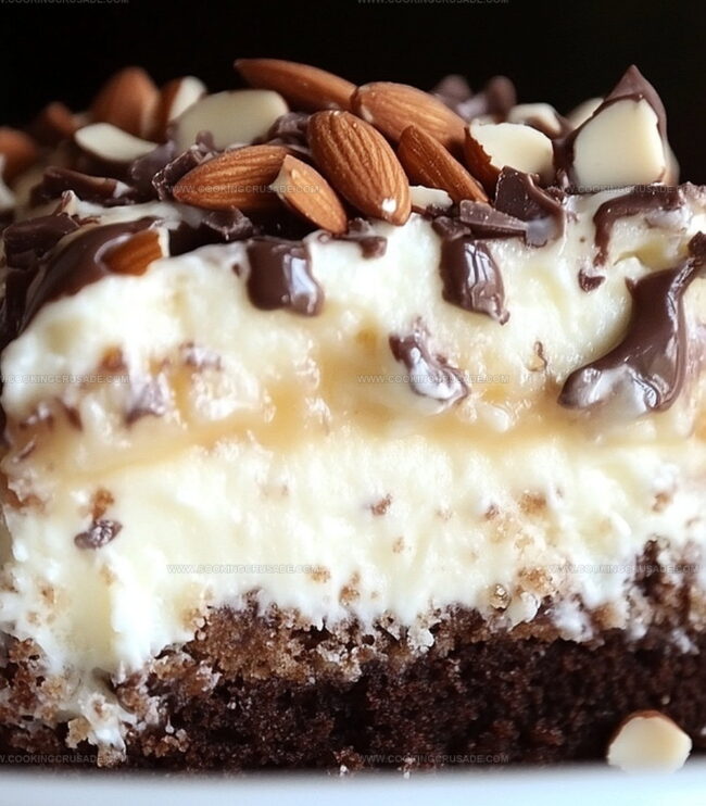 This cake captures the classic Almond Joy candy bar flavors with chocolate, coconut, and almonds in a delicious cake form. The poke technique allows the sweet coconut mixture to soak deeply into the cake, creating an incredibly moist and flavorful dessert.