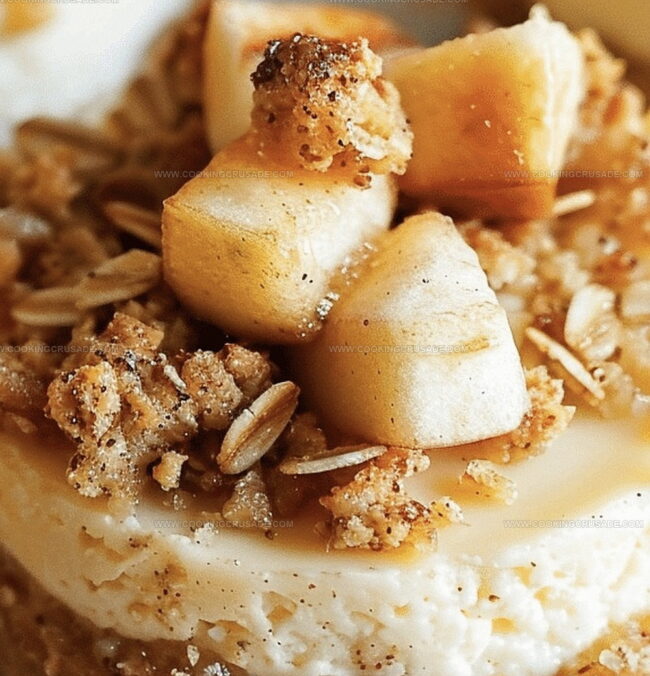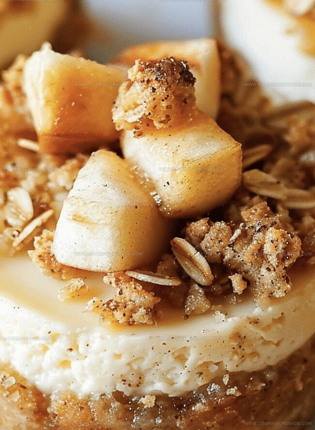 Creamy cheesecake meets classic apple crisp in a delightful marriage of flavors that promises pure comfort.