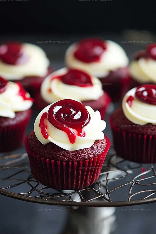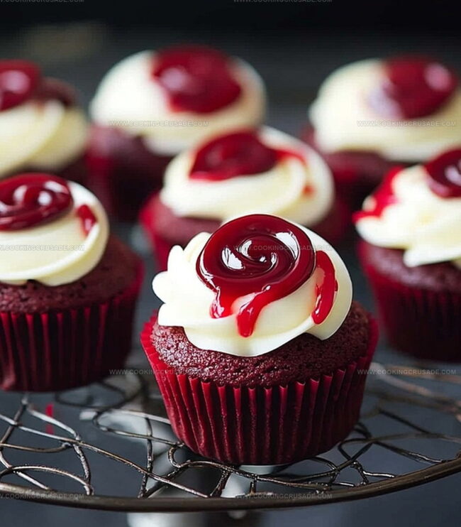 Sinister bloody red velvet cupcakes deliver dark delights with crimson charm and velvety richness. Killer dessert design promises haunting flavor experiences you won’t forget.