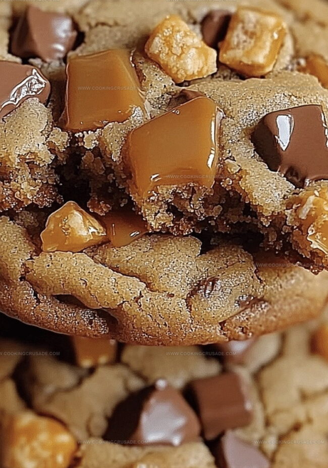 - Swap regular flour with gluten-free alternatives for celiac-friendly version, maintaining cookie’s rich taste and indulgent caramel-chocolate experience.