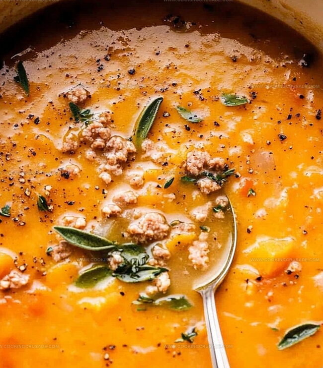 Golden sunlight dances through hearty butternut squash soup, warming winter kitchens with rich, creamy comfort. Silky pureed vegetables and subtle spices invite gentle memories of home-cooked goodness you’ll savor with each spoonful.