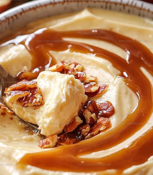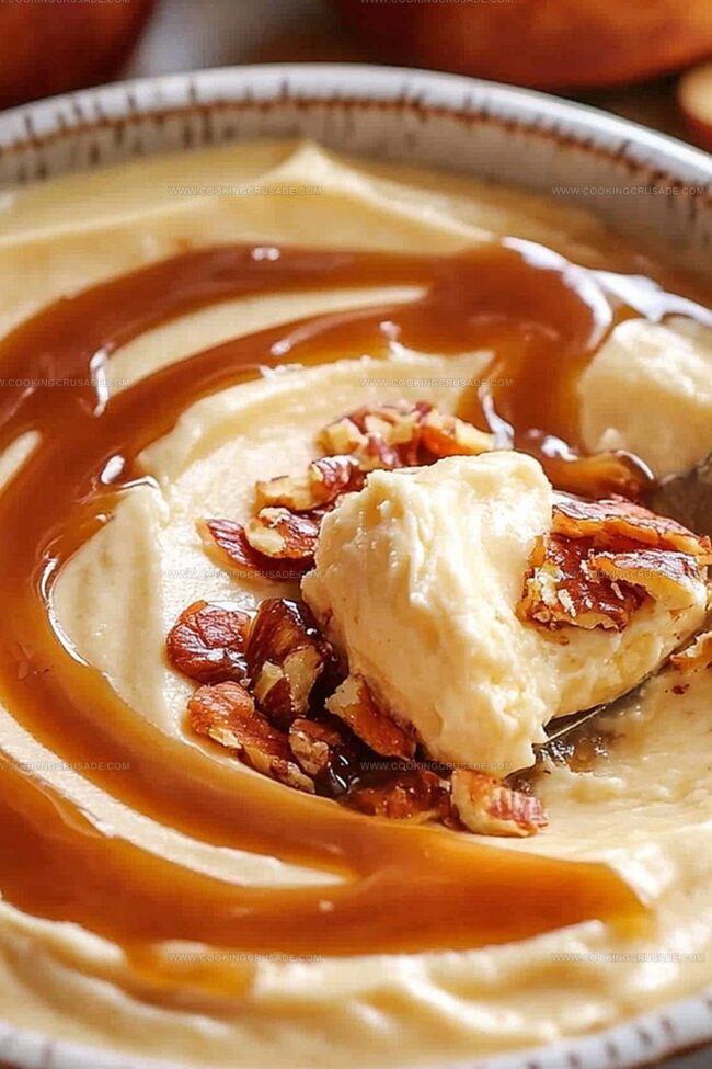 - Gently fold most of the caramel sauce into the cream cheese base, creating ribbons of golden sweetness that weave through the creamy landscape.