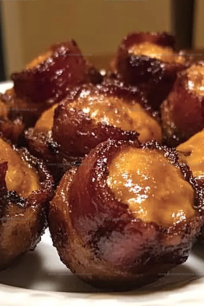 Cheddar-stuffed BBQ bacon bombs blend explosive flavor with irresistible comfort. Crispy bacon wraps gooey cheese in a tangy barbecue embrace, promising pure indulgence with each mouthwatering bite you’ll savor.