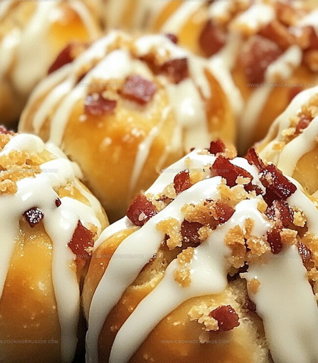 Irresistible Cheesy Buffalo Bacon Pretzel Bombs with Ranch Drizzle Recipe
