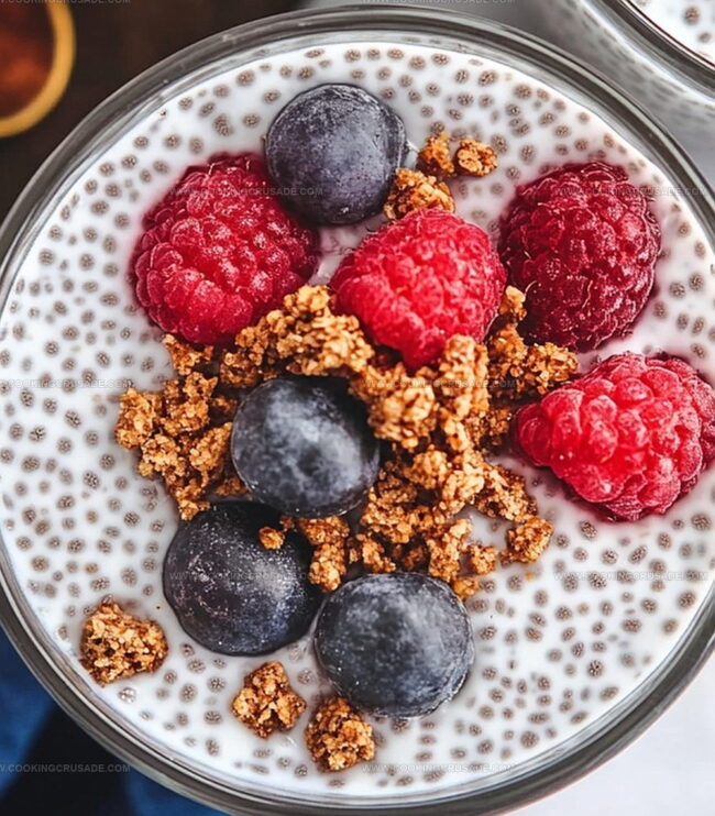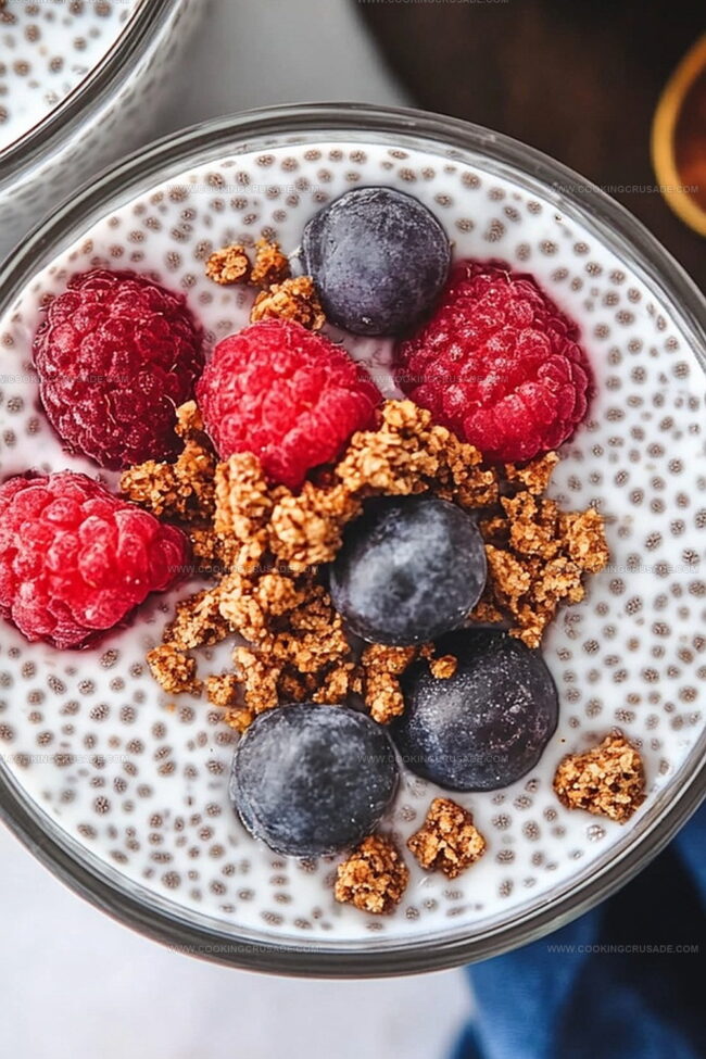 - Once the pudding has achieved a luscious, spoonable texture, give it a final gentle stir to redistribute any settled ingredients. Elegantly portion the chilled creation into serving vessels, then embellish with an artistic arrangement of fresh berries, crunchy granola, shredded coconut, or sliced almonds for textural contrast and visual appeal.