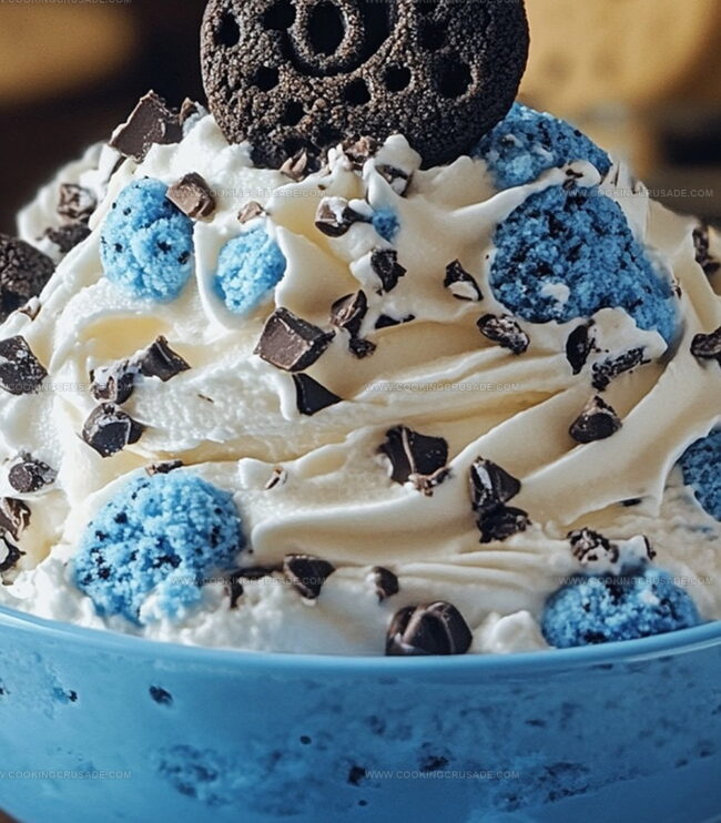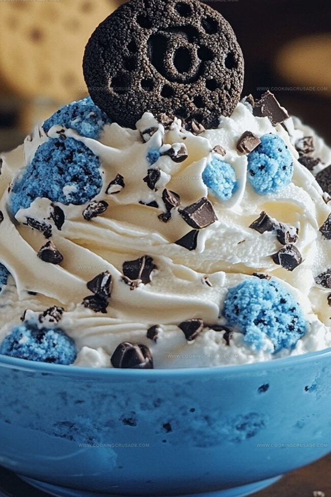 Indulgent Cookie Monster fluff blends creamy marshmallow magic with blue-tinted charm, creating a whimsical dessert that delights childhood memories. Cool clouds of sweetness dance with cookie crumbles, promising pure playground happiness for dessert enthusiasts.