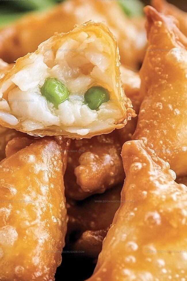Wonton wrappers become golden-brown pockets of pure joy when carefully folded and fried to perfection.