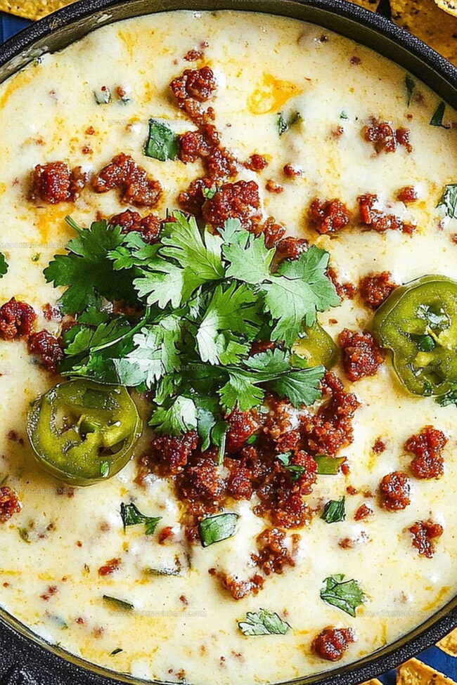 - Transfer the queso to a warm serving vessel, garnishing with fresh cilantro, additional diced jalapeños, and vibrant tomato confetti for a burst of color and freshness.