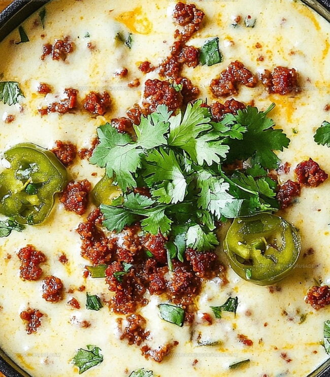 Chorizo adds a rich, spicy flavor and crispy texture that elevates the traditional queso. Its bold Mexican-style spices infuse the entire dip with an authentic, zesty kick that regular ground meat can’t match.