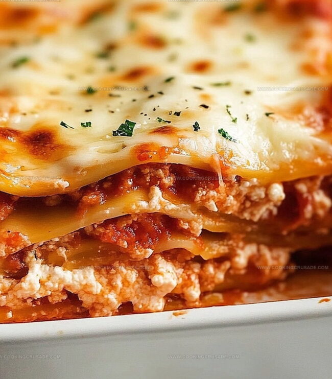 Layering Technique: Create a strategic layering process by spreading a thin meat sauce base, then alternating noodles, cottage cheese mixture, and mozzarella. Repeat the sequence twice, finishing with a final layer of meat sauce, mozzarella, and Parmesan to create a multi-dimensional flavor profile.