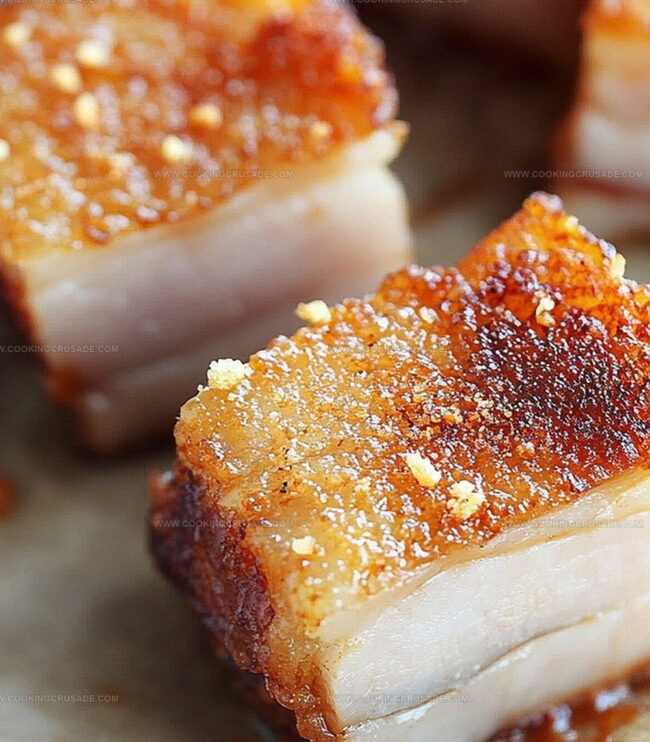 Grab your pork belly and gently pat it dry with clean paper towels. This secret step ensures a super crispy exterior that’ll make your taste buds dance. Slice the meat into delectable bite-sized cubes or sexy one-inch strips that’ll look amazing on a plate.