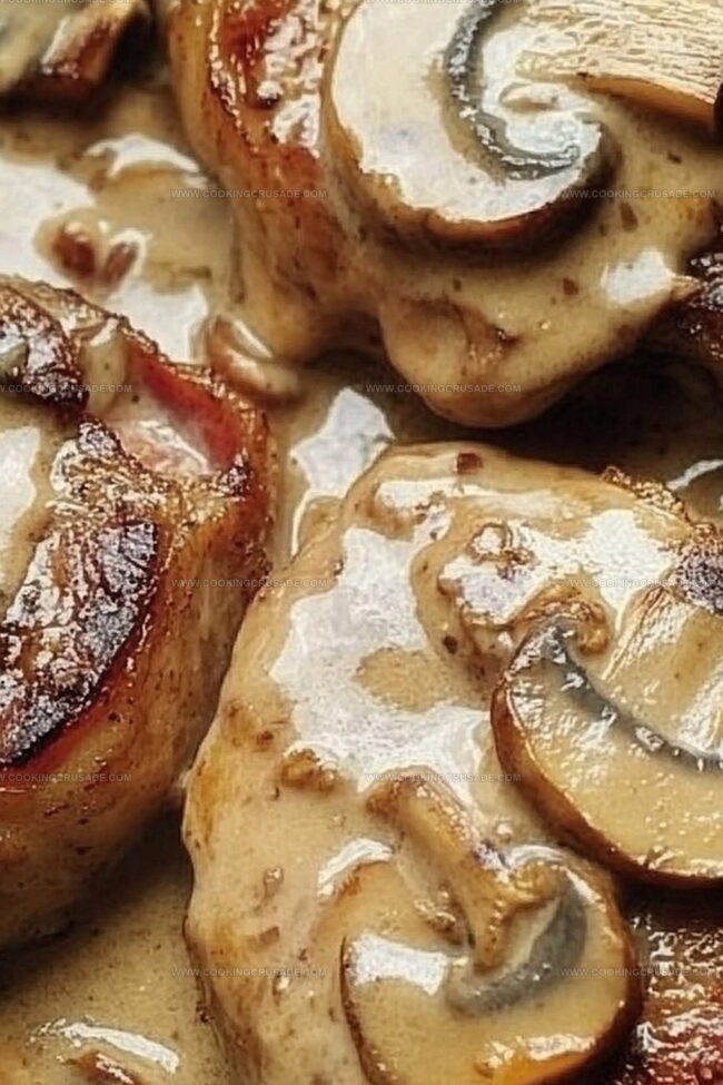 Mushrooms add an earthy depth that complements the rich pork and crisp bacon perfectly.