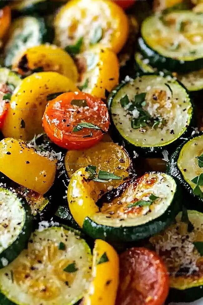 - Seasoning: In a large mixing bowl, toss zucchini, squash, and cherry tomatoes with extra virgin olive oil, minced garlic, Italian seasoning, sea salt, black pepper, and red pepper flakes. Ensure vegetables are thoroughly coated with the aromatic spice blend.