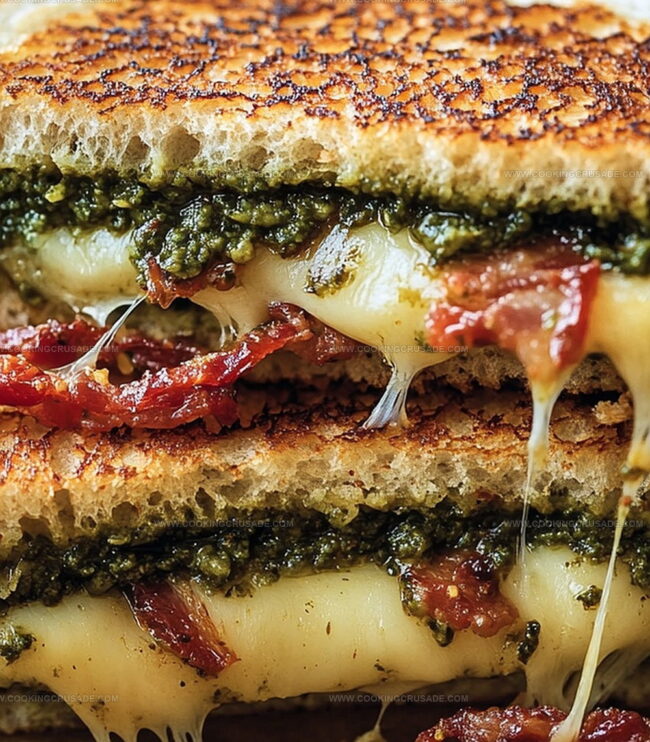 Gourmet sun-dried tomato bacon pesto grilled cheese elevates classic comfort food with bold Mediterranean flavors. Melted cheese, crispy bacon, and tangy pesto create an irresistible sandwich you’ll crave again and again.