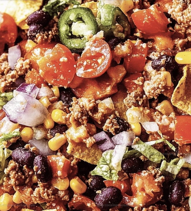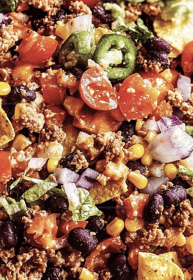 - Final Touches: Arrange avocado segments and delicate red onion rings, then crown the salad with the seasoned taco meat and crushed tortilla chips for a satisfying crunch.