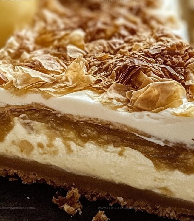 - Control Honey Syrup Absorption: Pour warm syrup over completely chilled cheesecake to prevent soaking and maintain the delicate phyllo crust’s crisp texture while adding a glossy, sweet finish.