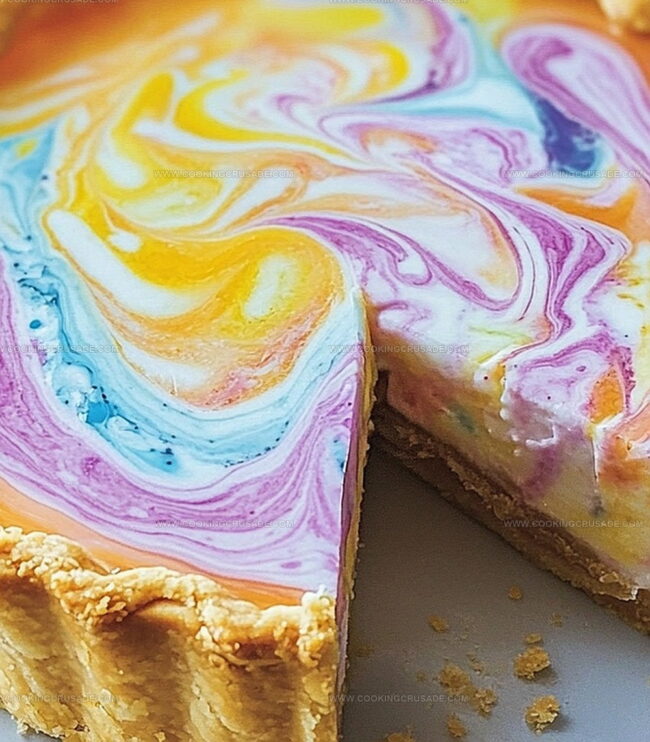Not at all! This recipe is beginner-friendly. The swirling technique is super simple – just drop different colored fillings and gently mix with a toothpick. Even if your swirls aren’t perfect, the pie will still look beautiful and taste amazing.
