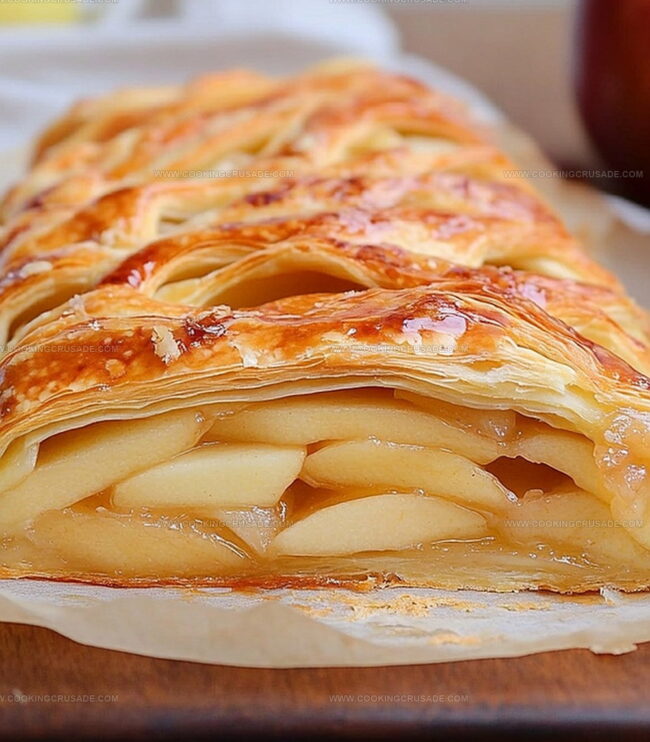This version combines creamy cream cheese with classic apple filling, creating a richer, more indulgent pastry that’s easier to make than traditional European strudels. The puff pastry and simple braiding technique make it approachable for home bakers.