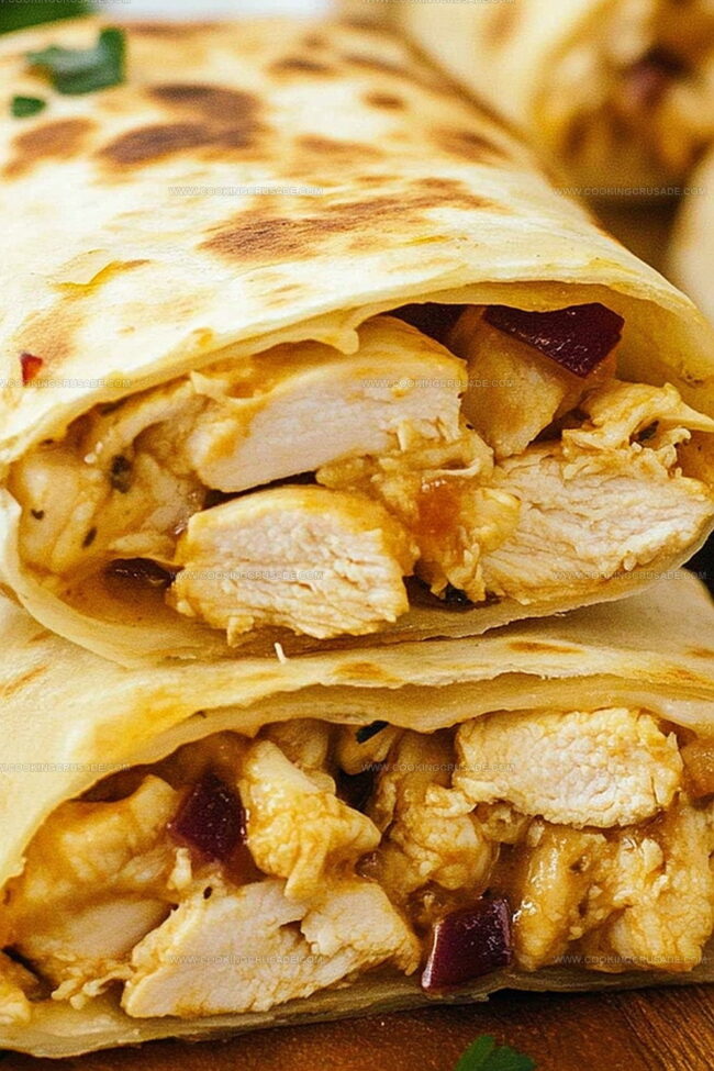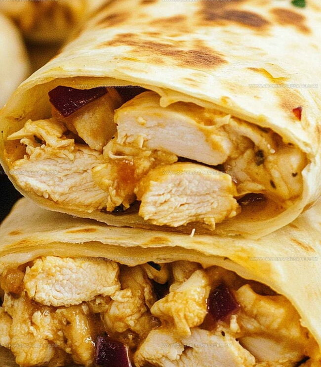 Spread a light layer of creamy mayonnaise across the tortilla’s surface. Create a colorful foundation with:Nestle your saucy chicken on top of these vibrant ingredients. For an extra creamy touch, add smooth avocado slices that bring a luxurious richness to your wrap.
