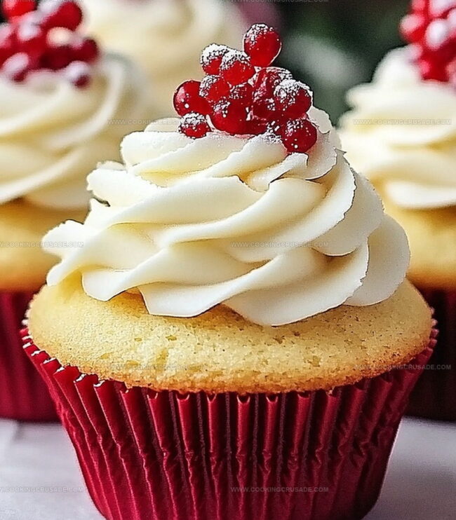 Festive Christmas vanilla cupcakes bring holiday cheer with their sweet, nostalgic flavor. Delicate frosting and cheerful sprinkles create a merry dessert perfect for celebrating winter’s most magical season with friends and family.