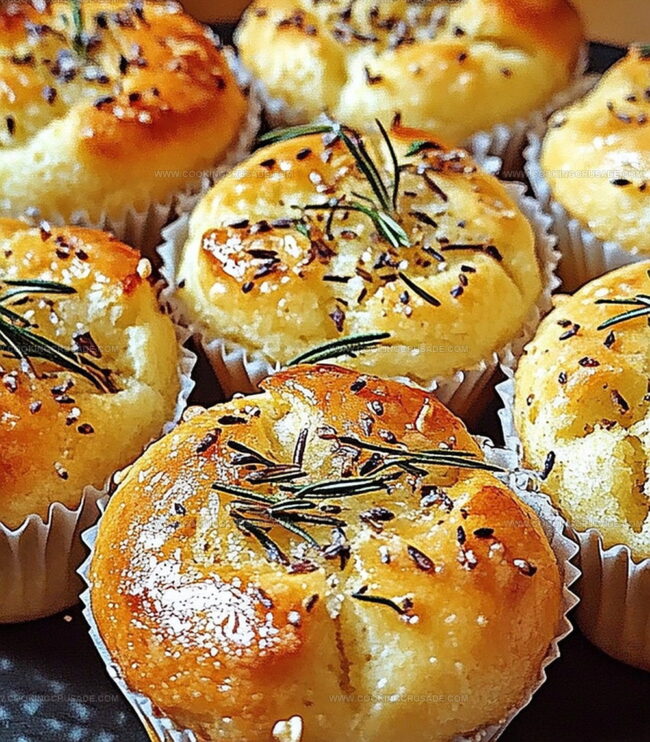 - Sprinkle flaky sea salt and additional rosemary over the muffins, adding textural contrast and amplifying the herbal notes.