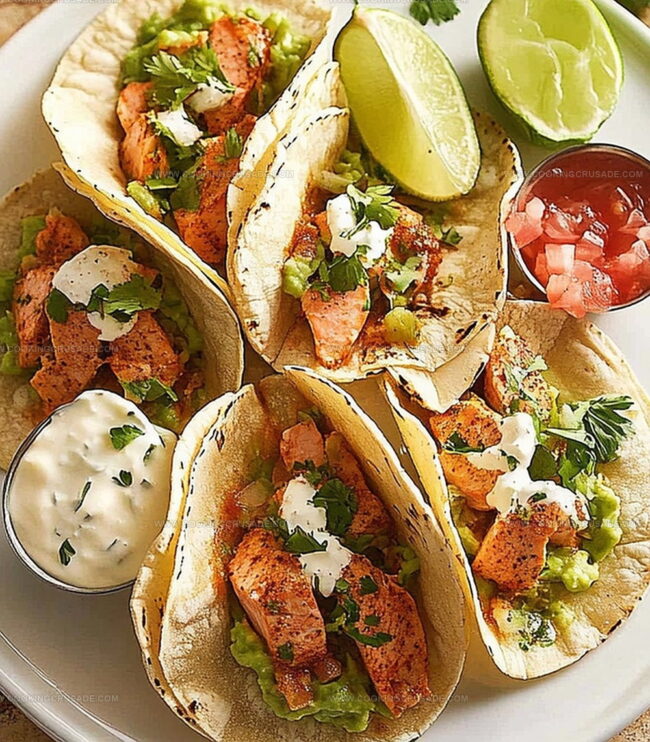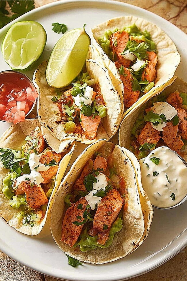 Mexican street-style salmon tacos bring zesty coastal flavors to your dinner table. Crispy grilled fish nestled in warm tortillas creates a perfect balance of fresh ingredients and bold spices that will delight your palate.
