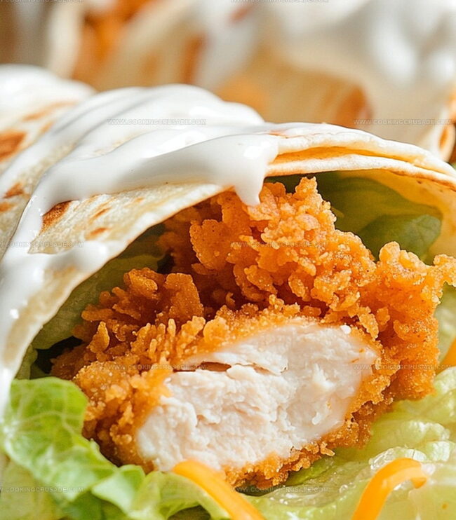 Crispy chicken ranch snack wrap delights with a perfect blend of flavors from classic American fast-food cuisine. Homemade wraps bring restaurant-style satisfaction right to kitchen counters, letting you enjoy a quick and tasty meal.