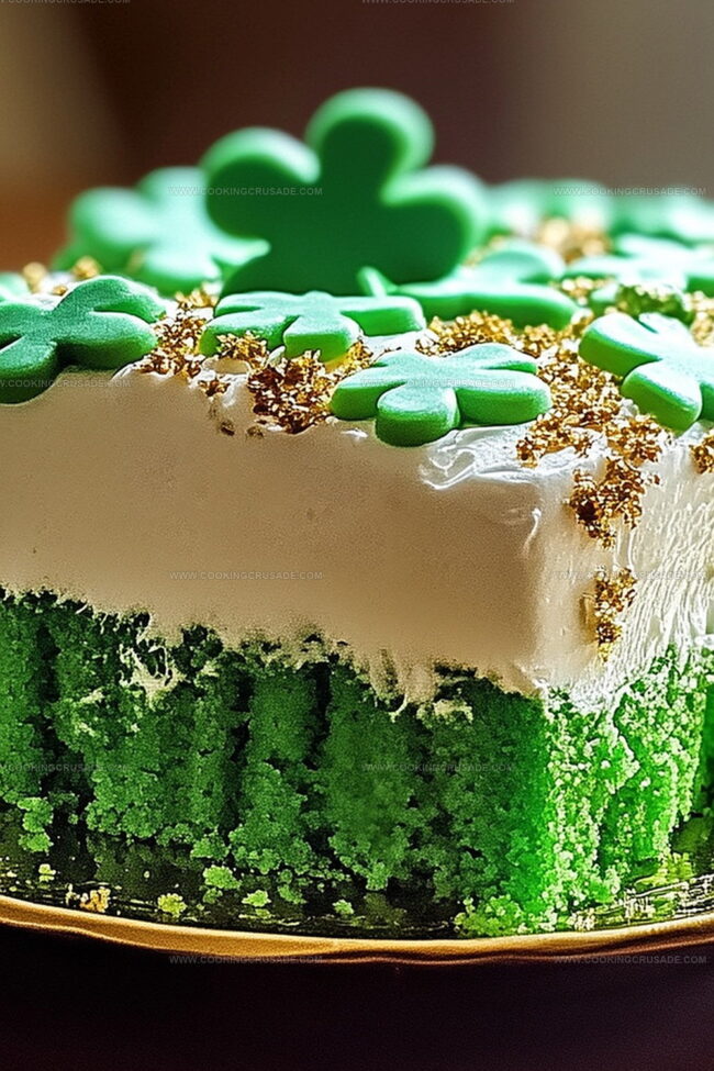 Layers of moist white cake get infused with vibrant mint-green pudding, creating a playful treat that sparkles with St.