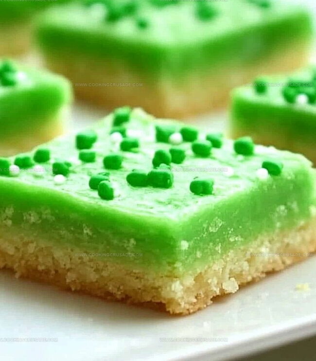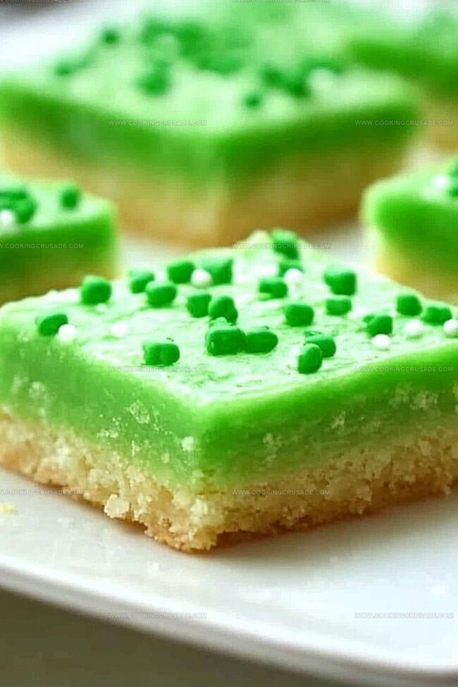 Once the bars cool completely, spread that vibrant green frosting across the top. Sprinkle with festive decorations that make your treat pop with holiday spirit. Slice into squares and enjoy your Irish-inspired dessert!