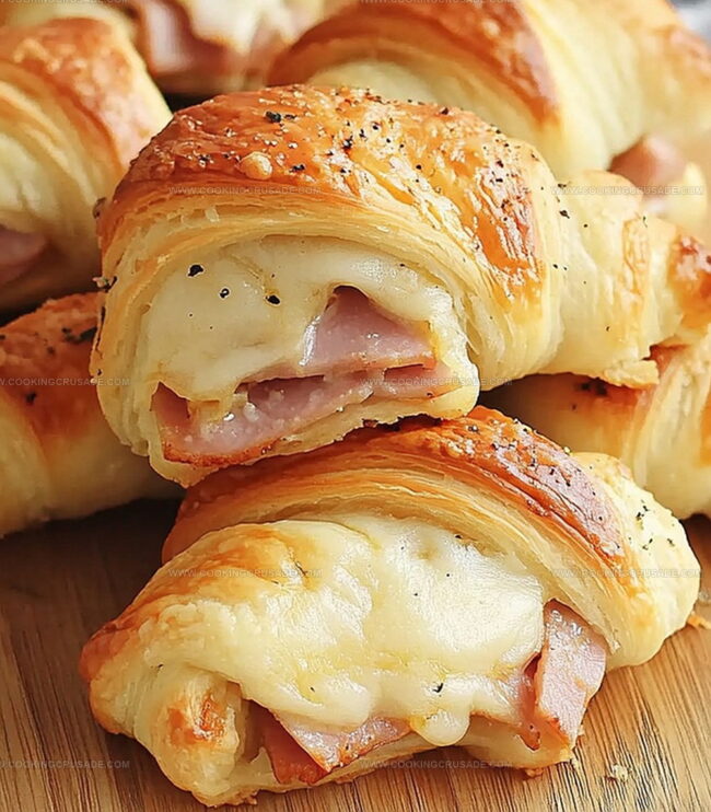 Warm, golden crescent rolls filled with savory ham and cheese melt hearts at every gathering.