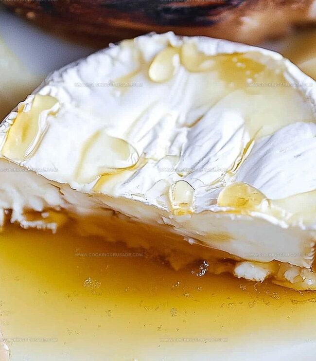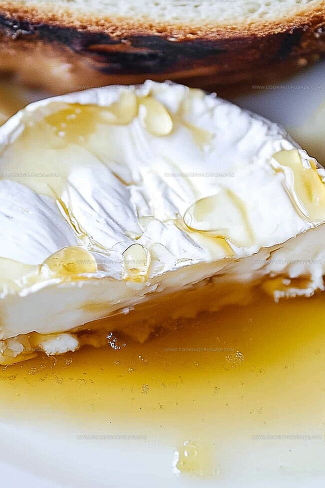 - Flavor Infusion: Remove the Brie from the oven once it reaches a pillowy, soft state. Generously drizzle golden honey across the surface, creating intricate patterns that complement the cheese’s rich profile.