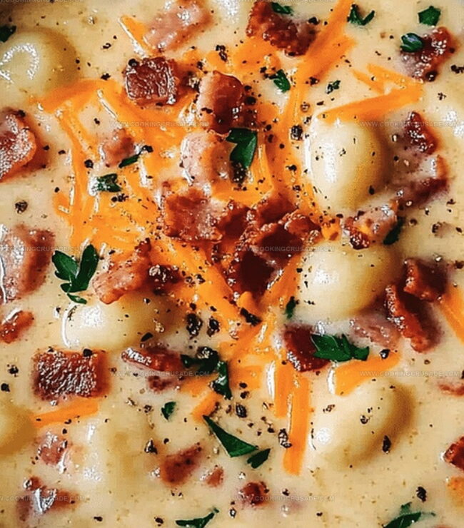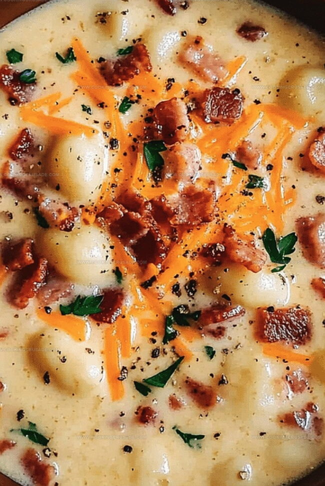 Soft, pillowy gnocchi dance alongside crispy bacon bits in a rich, creamy broth that whispers comfort with every spoonful.