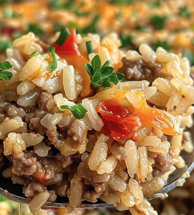 Hearty hamburger rice casserole combines ground beef, rice, and creamy cheese in a comfort-packed one-dish meal. Simple ingredients create a satisfying dinner perfect for family gatherings and quick weeknight meals you’ll crave.