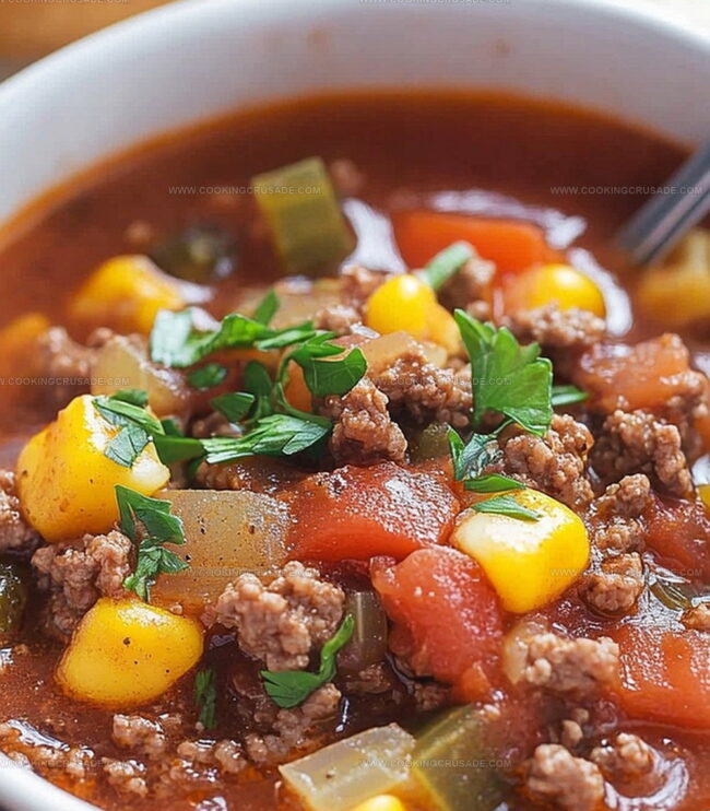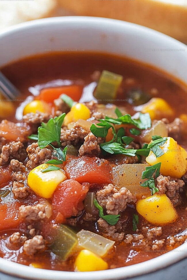 Packed with rich, savory flavors, this soup brings together ground beef, tender vegetables, and robust seasonings in one delicious bowl.
