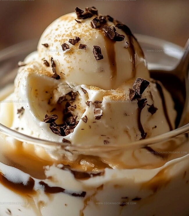 - Gelato Preparation: Elegantly transfer smooth vanilla gelato into a pre-chilled serving vessel, creating an immaculate white base for the dessert.
