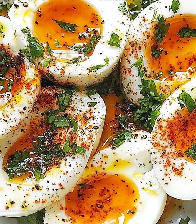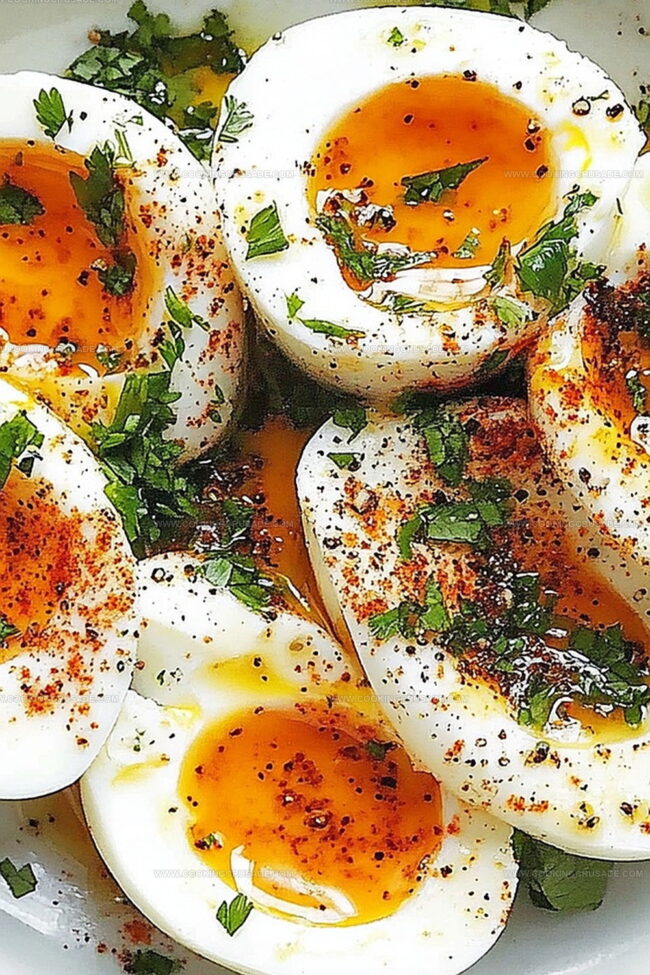 - Generously drizzle the warm, spice-infused chili butter over the eggs, ensuring complete coverage.