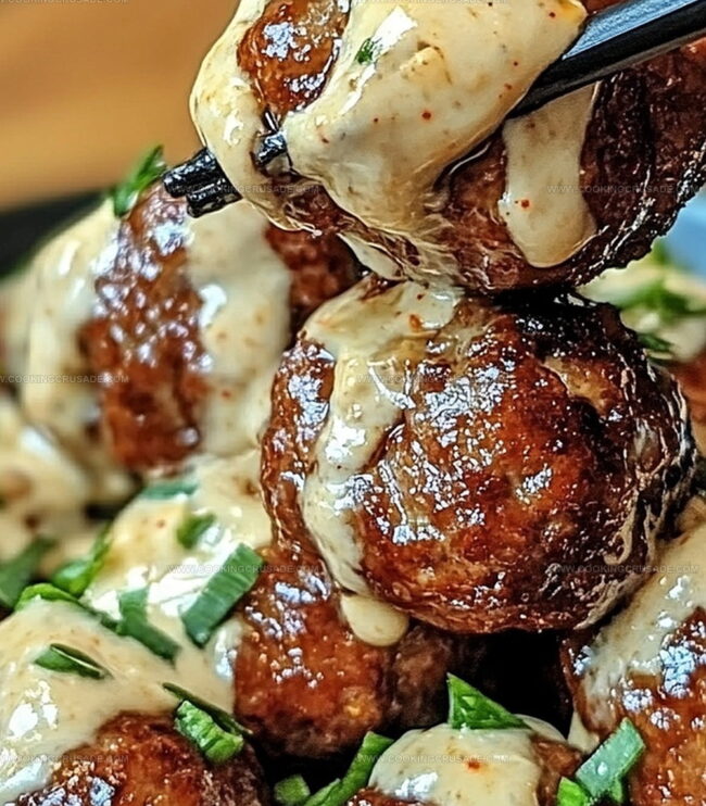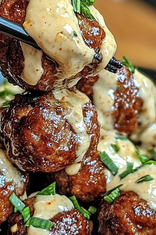 The accompanying spicy mayo dip adds a creamy, zesty kick that perfectly complements the meatballs’ rich profile.