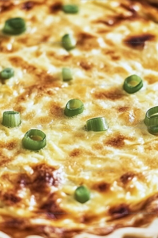 - Slice into wedges and serve either warm or at room temperature, revealing the creamy, savory layers within.