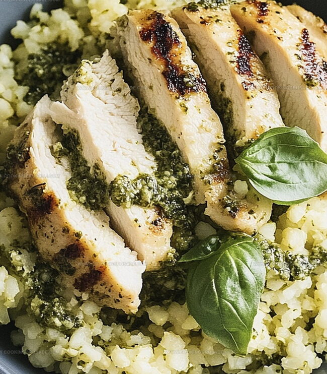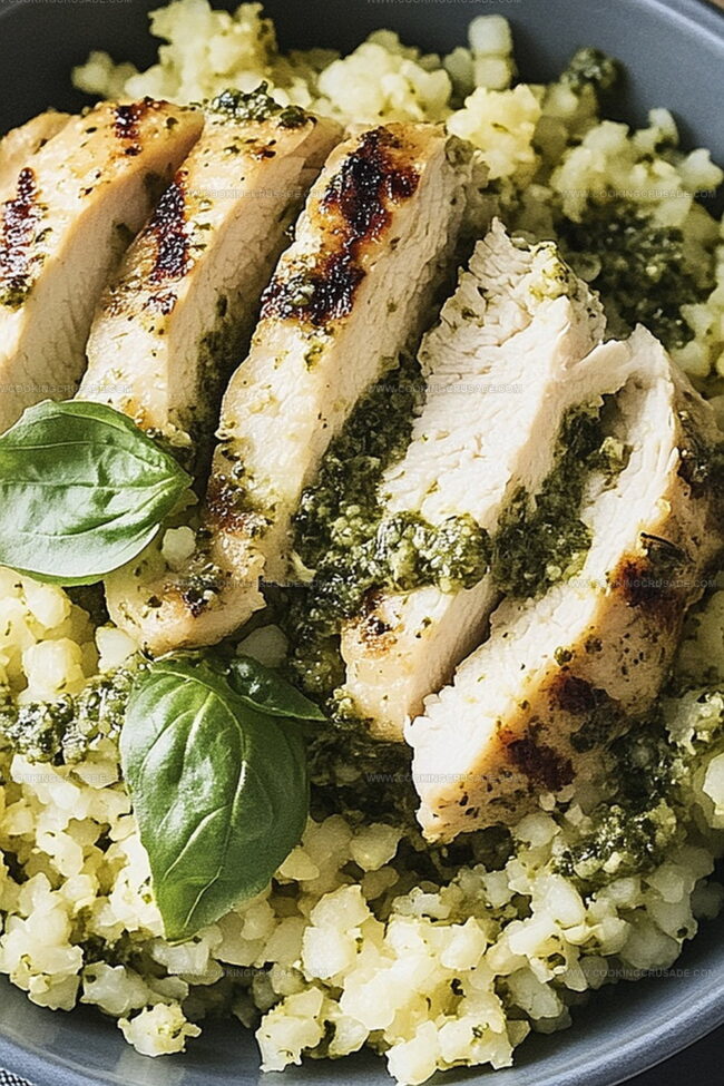 - Serving Preparation: Remove skillet from heat, letting the pesto-glazed chicken rest briefly before presenting alongside cauliflower rice, allowing flavors to harmonize and settle.