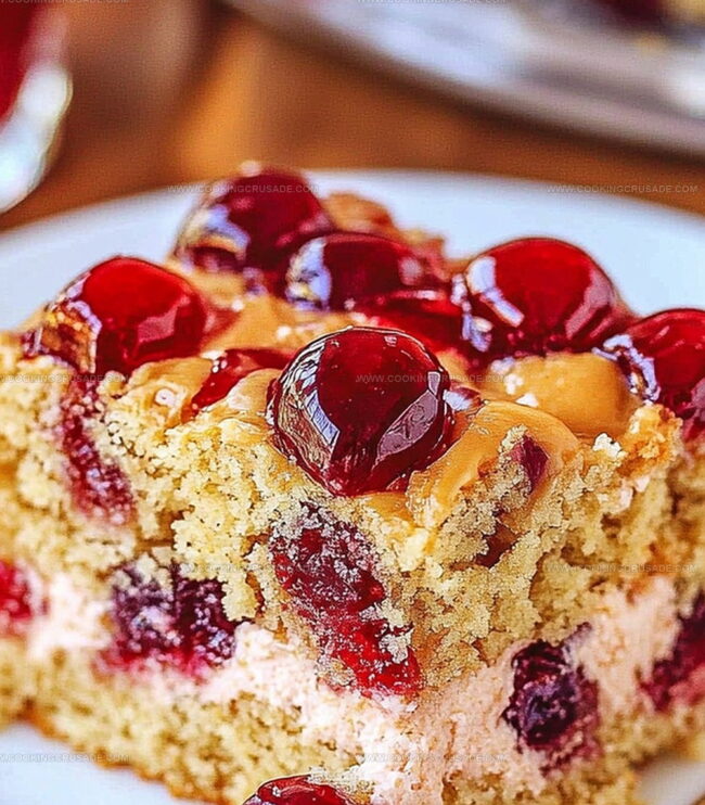 - Garnishing and Serving: Optionally sprinkle chopped peanuts over the cake for added texture, then slice into neat squares to showcase the classic peanut butter and jelly flavor profile.