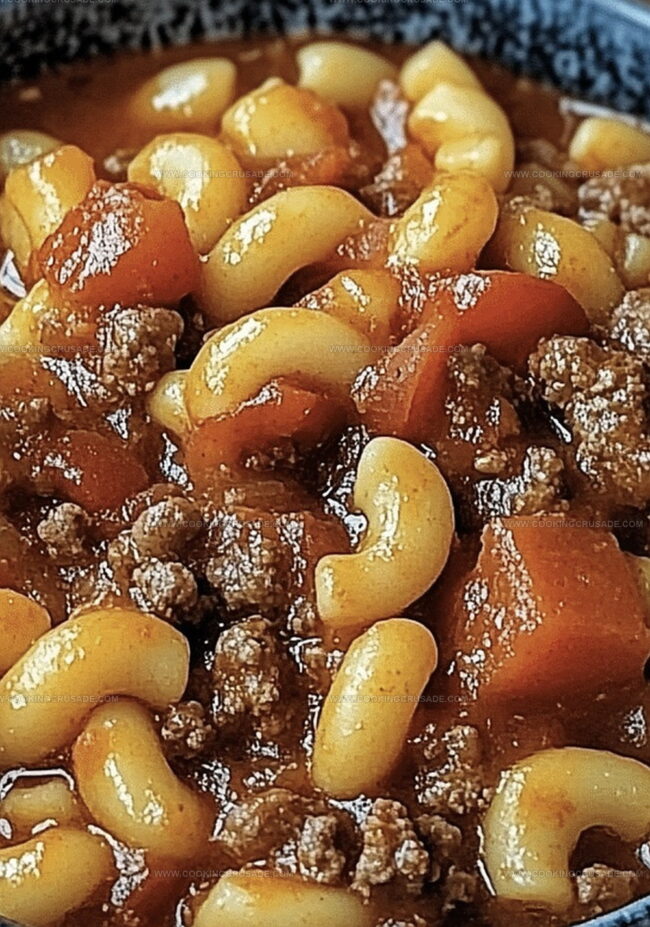 This American-style goulash is a one-pot pasta dish that’s heartier and simpler than the traditional Hungarian version. While classic goulash is a beef stew, this recipe combines ground beef, pasta, and a rich tomato sauce for a more comforting meal.