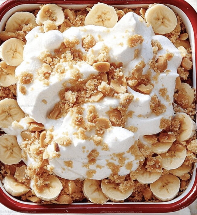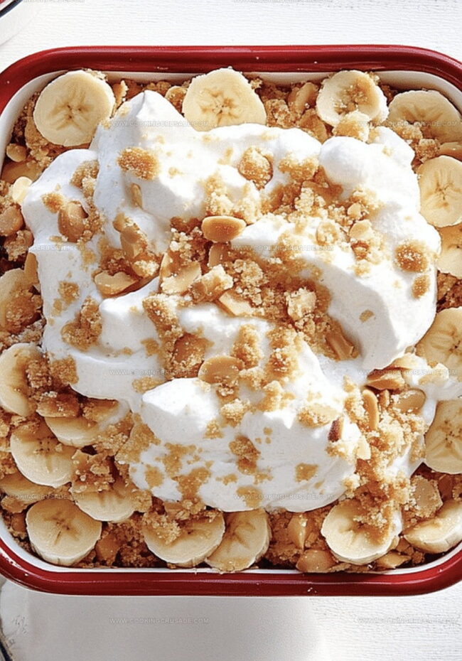 Dress up your dessert with some final flourishes. Scatter crushed peanuts across the top. If you’re feeling extra indulgent, add a few fresh banana slices and a dollop of whipped cream. Slide the entire creation into the refrigerator and let it rest for at least 2 hours. This resting time allows all the flavors to mingle and create a magical dessert experience. The longer it chills, the more delicious it becomes – overnight is pure perfection!
