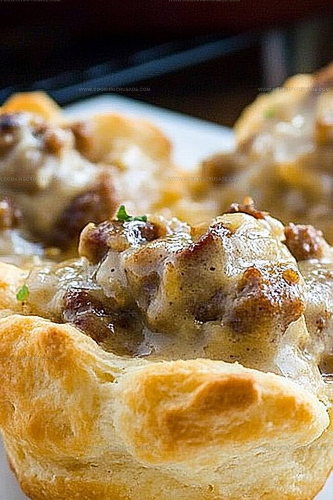 Bread Base:Meat Filling:Gravy Components:Garnish:Steps For Sausage Gravy Biscuit Cups Recipe