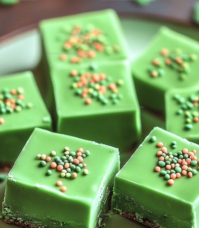 Rainbow Sprinkle Explosion: Use multi-colored sprinkles instead of green ones, transforming the fudge into a playful, festive treat that appeals to kids and adults alike.