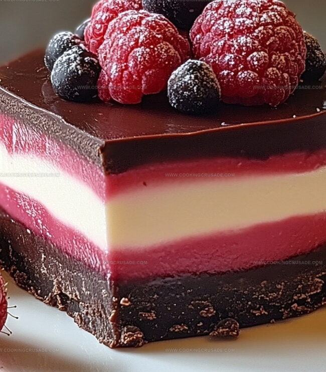 - Chilling and Presentation: Refrigerate for 4-6 hours or overnight until firmly set. Before serving, garnish with fresh raspberries, chocolate shavings, and a mint sprig, presenting a visually stunning and delectable dessert.