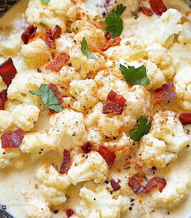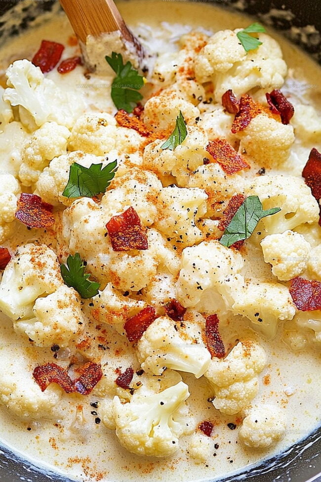 - Final Assembly: Once cauliflower is perfectly steamed and drained, tenderly integrate it into the creamy sauce, ensuring each floret becomes luxuriously enrobed. Transfer to a serving dish and optionally garnish with finely chopped parsley or a delicate sprinkle of grated cheese for an elegant finish.