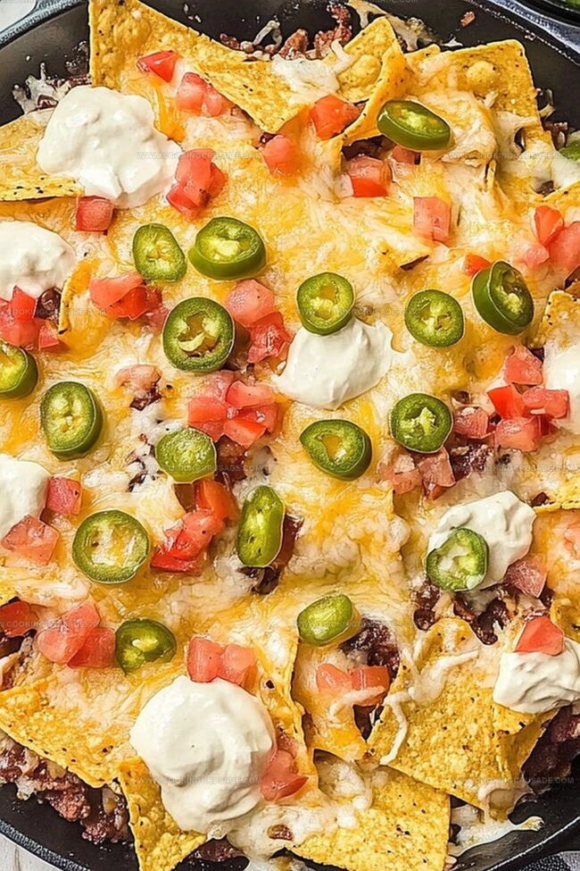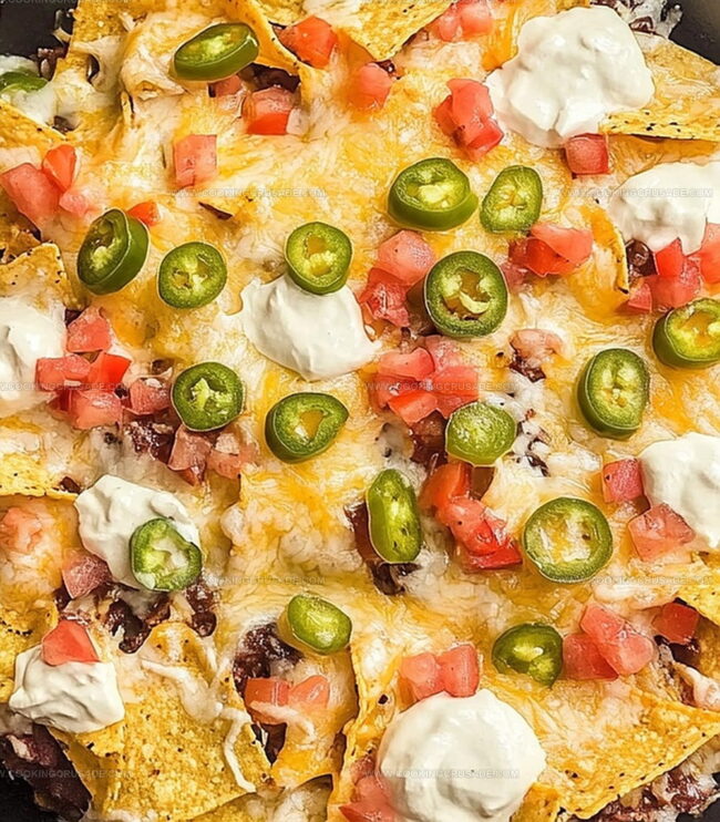 - Protein and Vegetable Layering: Densely scatter black beans, seasoned meat, diced onions, sliced jalapeños, chopped tomatoes, and briny olives across the cheese-covered chips, building a complex flavor landscape.