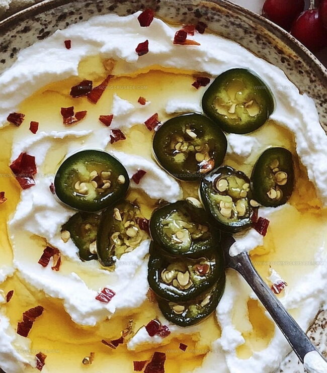 Whipped honeyed jalapeño ricotta elevates creamy cheese with spicy-sweet complexity. Smooth ricotta blends perfectly with honey’s warmth and jalapeño’s gentle kick, creating an irresistible spread you’ll crave on everything from toast to fresh vegetables.
