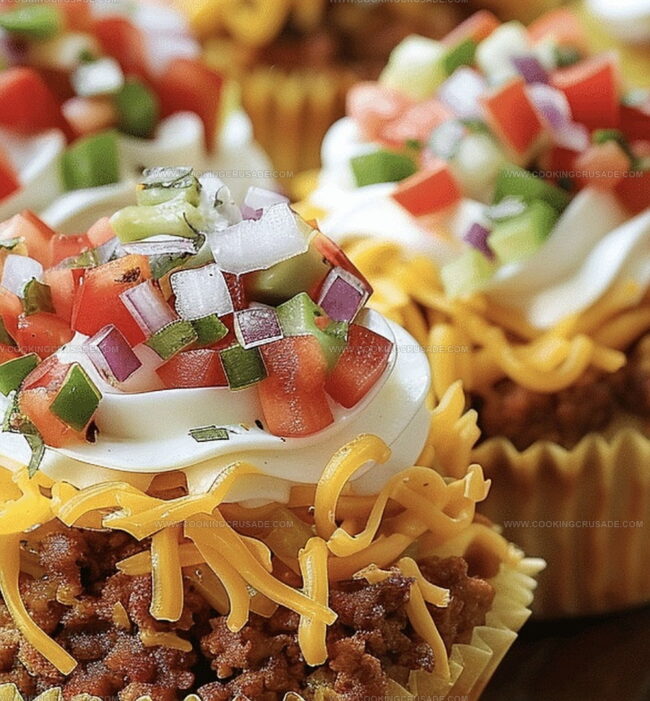Irresistible Taco Cupcakes fuse Mexican street flavors with playful bakery creativity, delivering a mouthwatering fusion that delights party guests. Crispy wonton wrappers, seasoned ground beef, and melted cheese create a handheld carnival of zesty, savory excitement you’ll crave again and again.